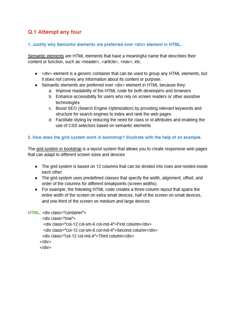 1. Justify why Semantic elements are preferred over <div> element in HTML.