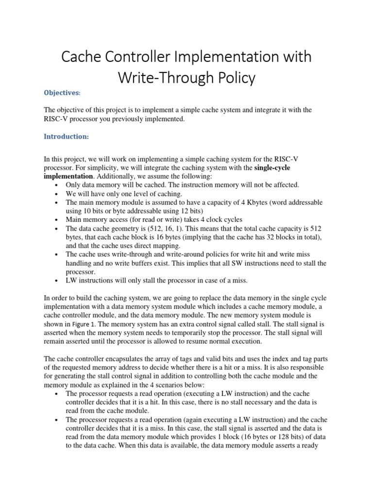 In this project, we will work on implementing a simple caching system for the RISC-V
