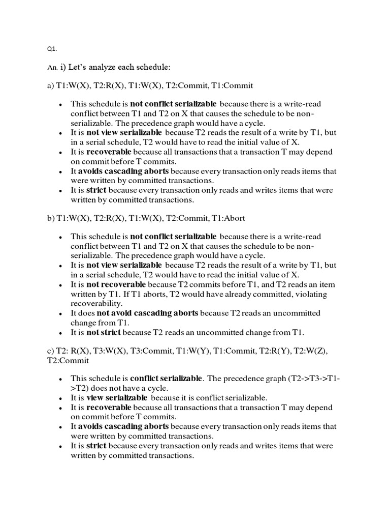 a) (i) In Serializable isolation level, transactions are completely isolated from each