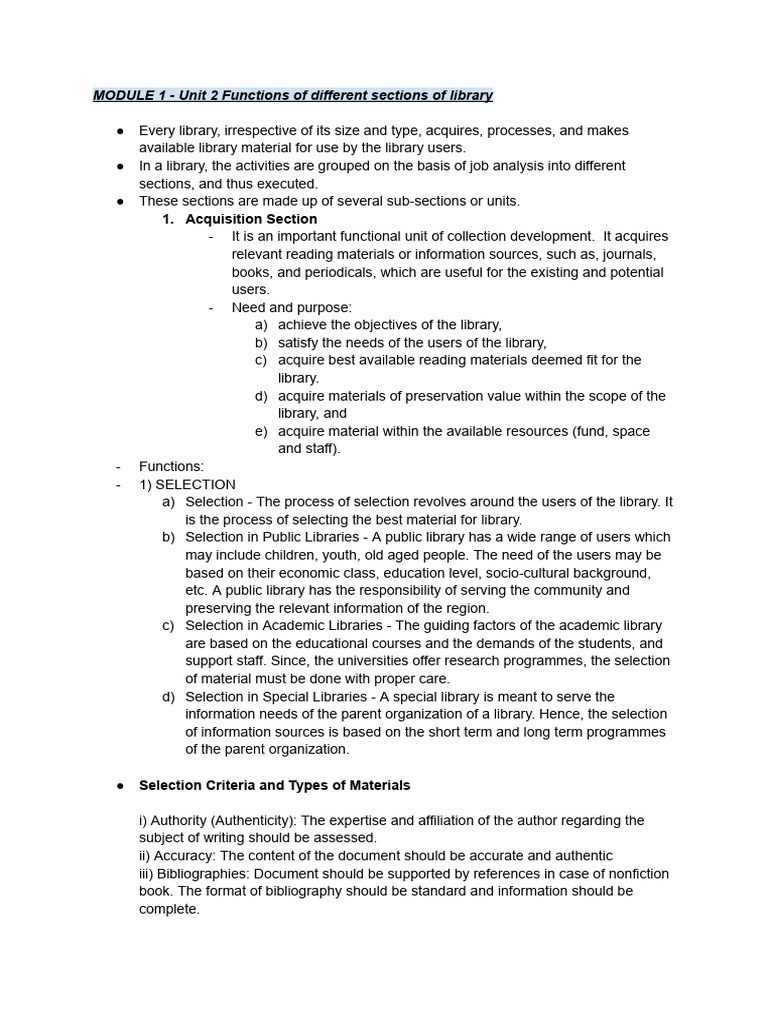MODULE 1 - Unit 2 Functions of different sections of library