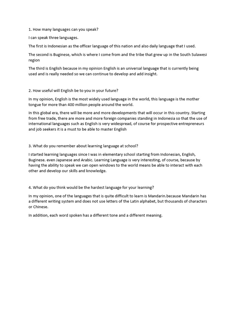 The first is Indonesian as the officer language of this nation and also daily language that I used.