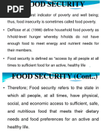 considered food insecure. Ex: even if they have food available and accessible, they would need to know how to use it in order to be secure.
