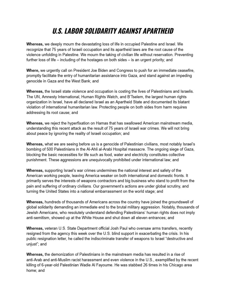 we deeply mourn the devastating loss of life in occupied Palestine and Israel. Werecognize that 75 years of Israeli occupation and its apartheid laws are the root cause of theviolence unfolding in Palestine. We mourn the taking of civilian life without reservation. Preventingfurther loss of life – including of the hostages on both sides – is an urgent priority; and
