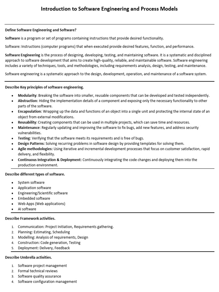 Software Engineering is the process of designing, developing, testing, and maintaining software. It is a systematic and disciplined