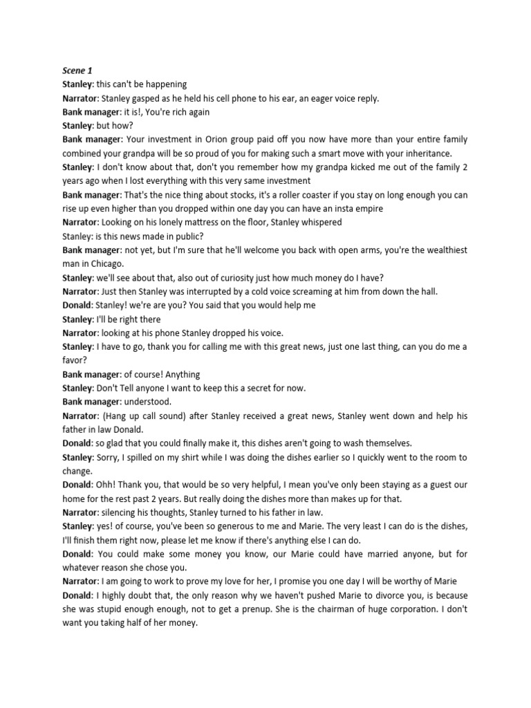 Narrator: Feeling his chest Stanley thought to himself. I am going to help Marie's company, but first I