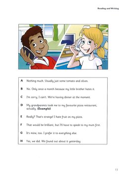 E Really? That’s strange! I hate fruit on my pizza.