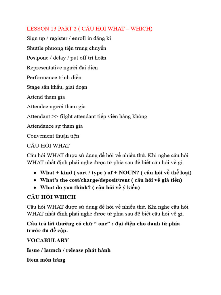 LESSON 13 PART 2 ( CÂU HỎI WHAT – WHICH)