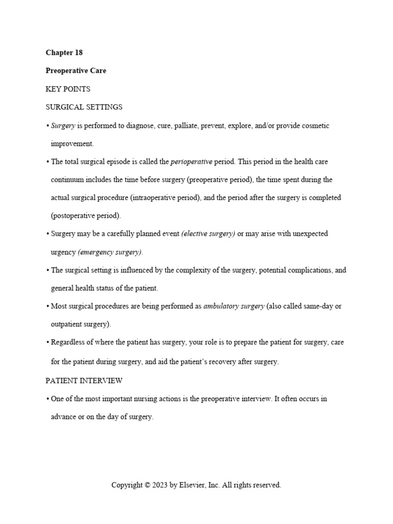 • Derive preoperative nursing interventions from the nursing assessment, based on each patient’s