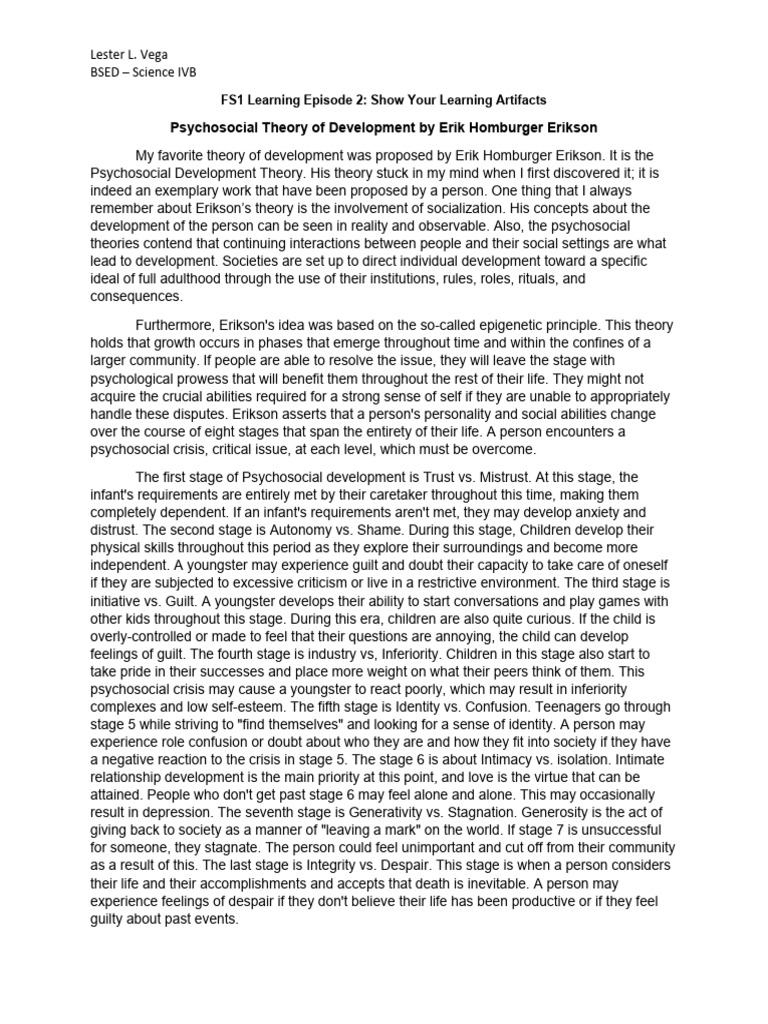 Psychosocial Development Theory. His theory stuck in my mind when I first discovered it; it is