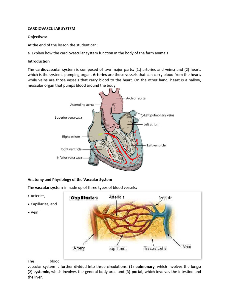 a. Explain how the cardiovascular system function in the body of the farm animals