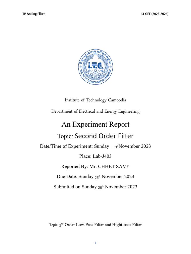 Topic: 2nd Order Low-Pass Filter and Hight-pass Filter
