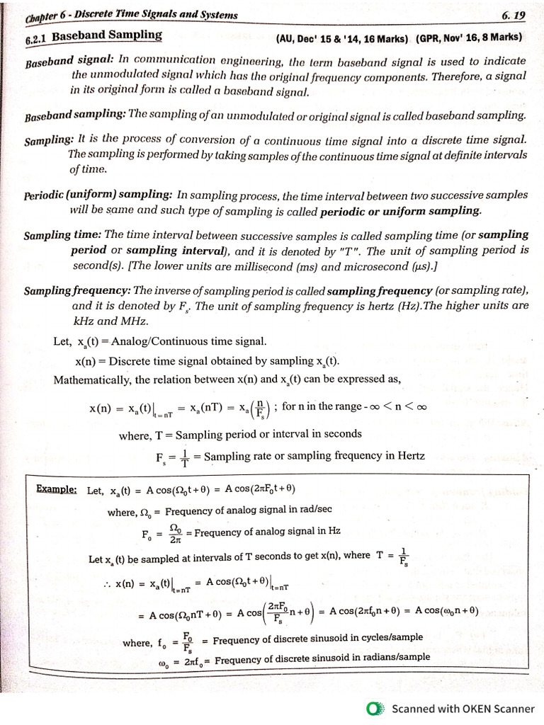 62.1 Baseband Samplin, (AU, Dec! 15 & '14, 16 Marks) (GPR, Nov' 16, 8 Marks)