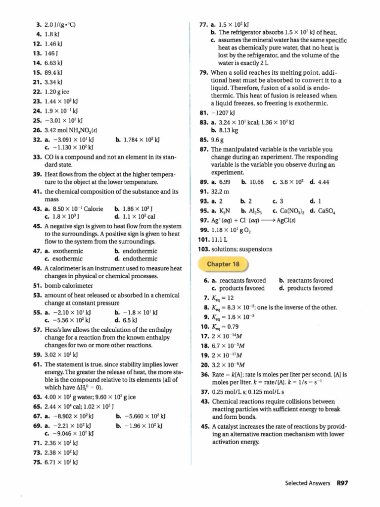69. a. - 2.21 X 102 kJ b. - 1.96 X 102 kJ 45. A catalyst increases the rate of reactions by provid-