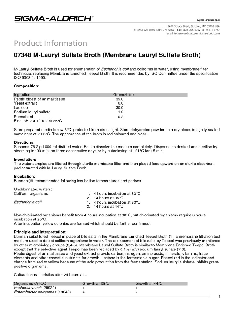 07348 M-Lauryl Sulfate Broth (Membrane Lauryl Sulfate Broth)