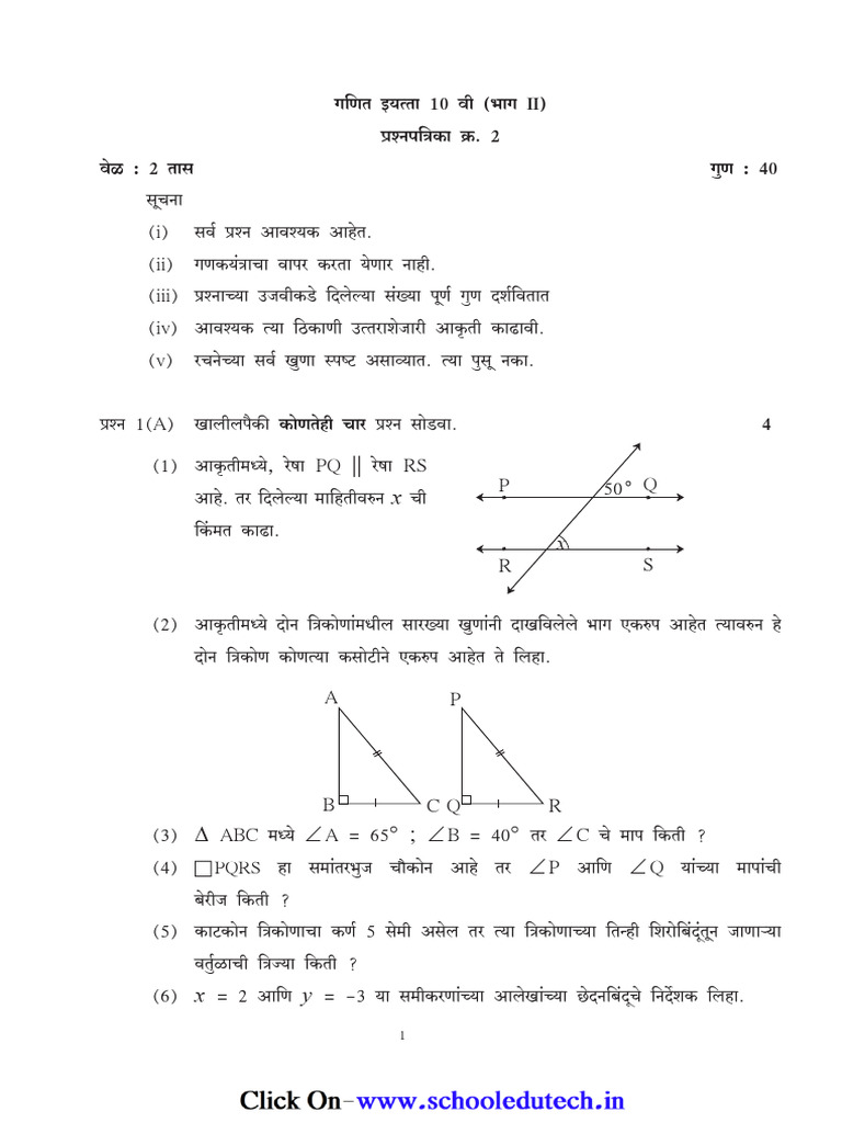 गणित इयत्ता 10 वी (भाग II)