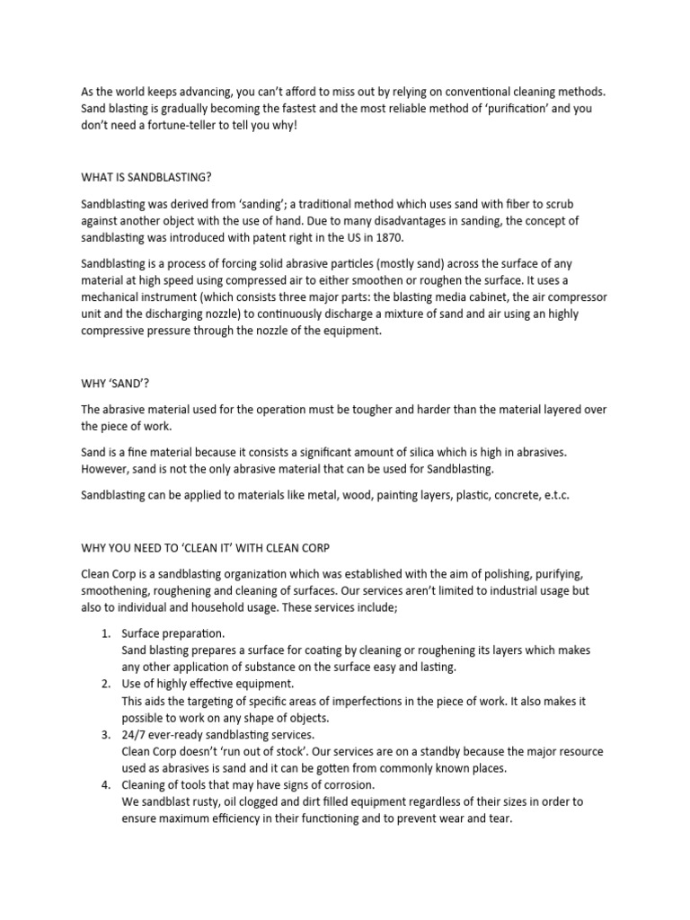 Clean Corp is a sandblasting organization which was established with the aim of polishing, purifying,