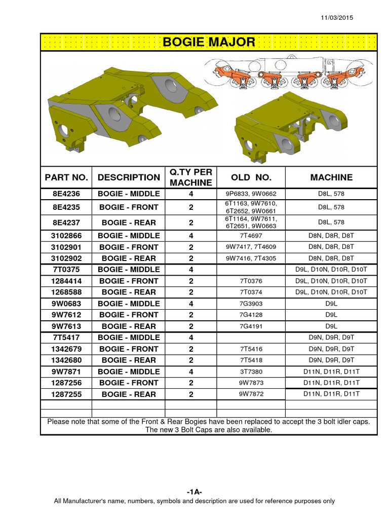 D11N, C [Link] REAR (RH) 1287255 BOGIE MAJOR 1 2618288 BOGIE MINOR RH 2 7T9311 BOGIE PIN 4