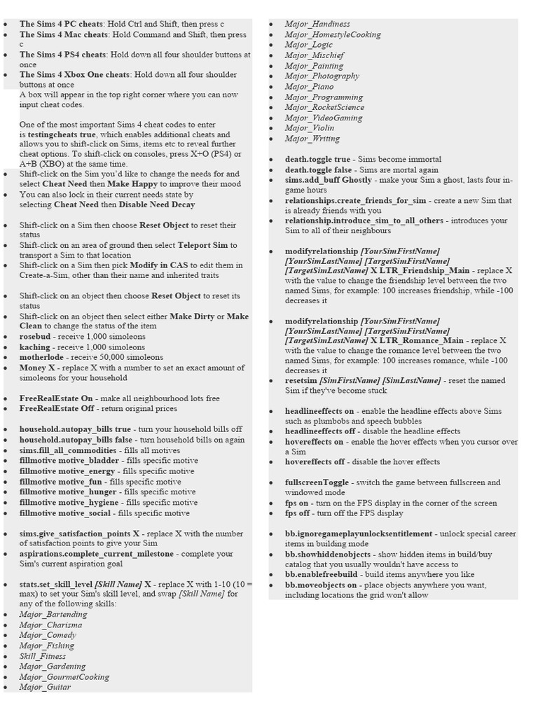 The Sims 4 PS4 cheats: Hold down all four shoulder buttons at Major_Mischief