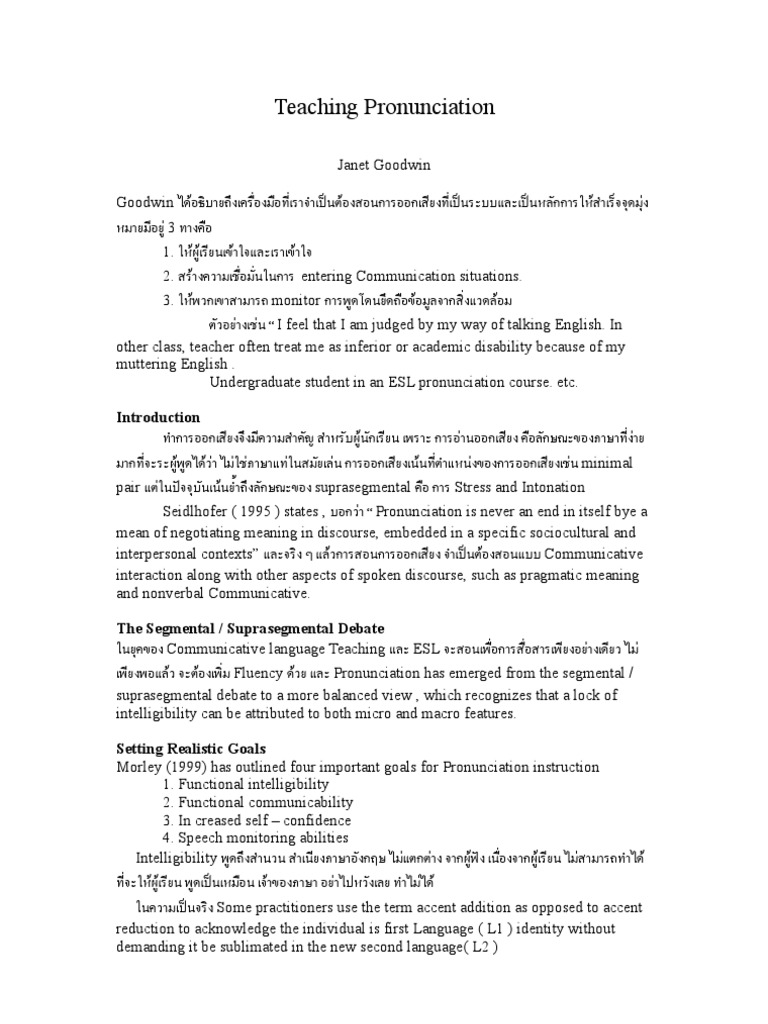 interpersonal contexts” และจริง ๆ แล้วการสอนการออกเสียง จำาเป็นต้องสอนแบบ Communicative