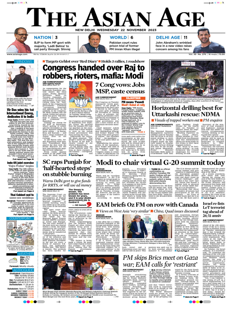 Full report on Page 4 NEW DELHI, NOV. 21 ing on Tuesday evening. Canadian Prime Minister countries” will participate 150 leaders of nations had G-20 presidency... Leaders