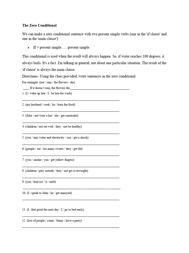 Directions- Using the clues provided, write sentences in the zero conditional.