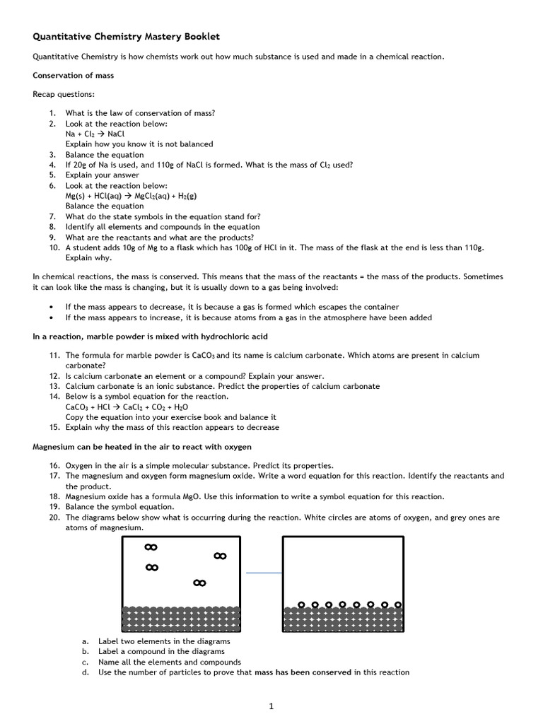 Quantitative Chemistry is how chemists work out how much substance is used and made in a chemical reaction.