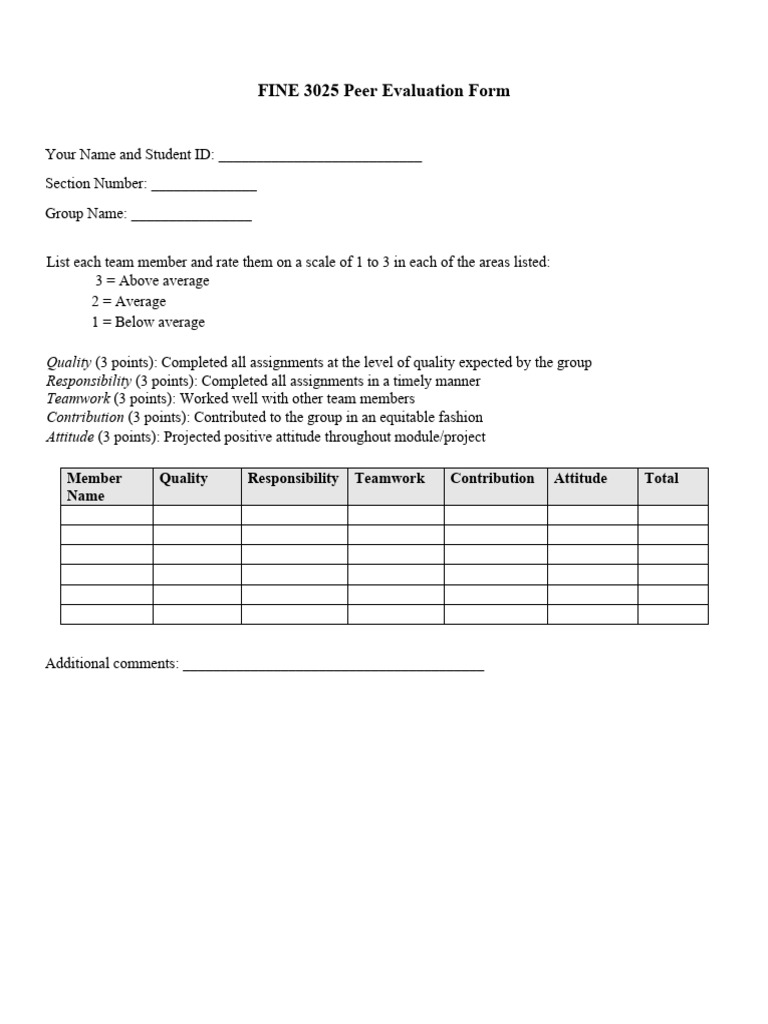 FINE 3025 Peer Evaluation Form