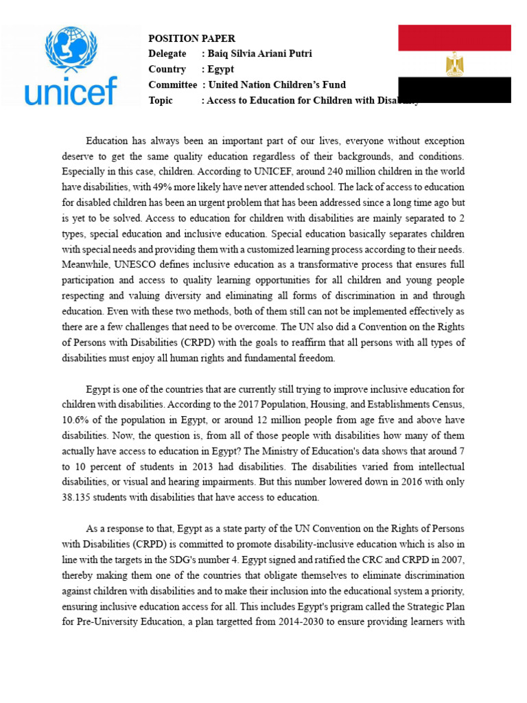 Egypt is one of the countries that are currently still trying to improve inclusive education for