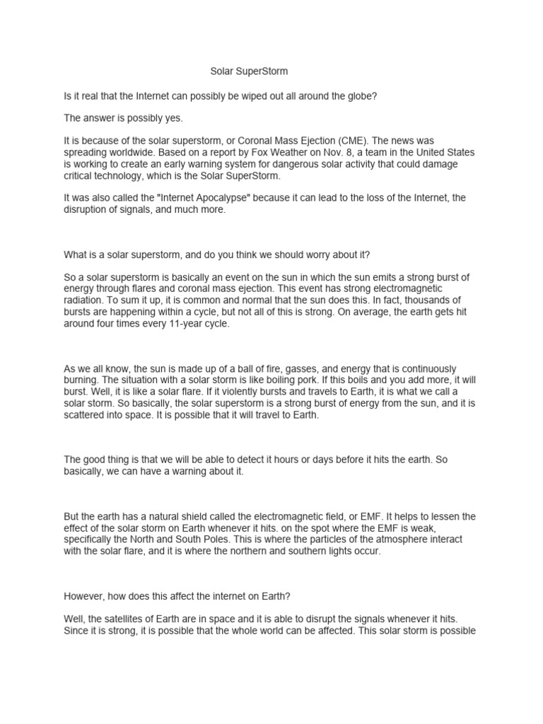 solar storm. So basically, the solar superstorm is a strong burst of energy from the sun, and it is