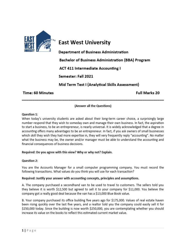 ACT 411 Intermediate Accounting I