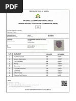 NECO 2024 SSCE Result for Omoware Vincent