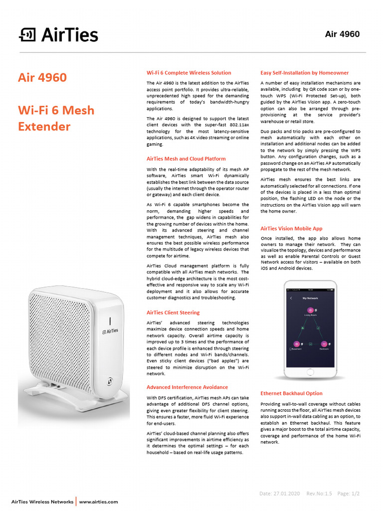 Air 4960 The Air 4960 is the latest addition to the AirTies A number of easy installation mechanisms are