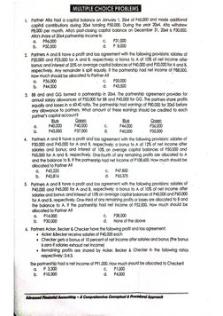 has a book value of P50,000 and a market value of P60,000. The partners choose to prepareMULTIPLE CHOICE PROBLEMS 279
