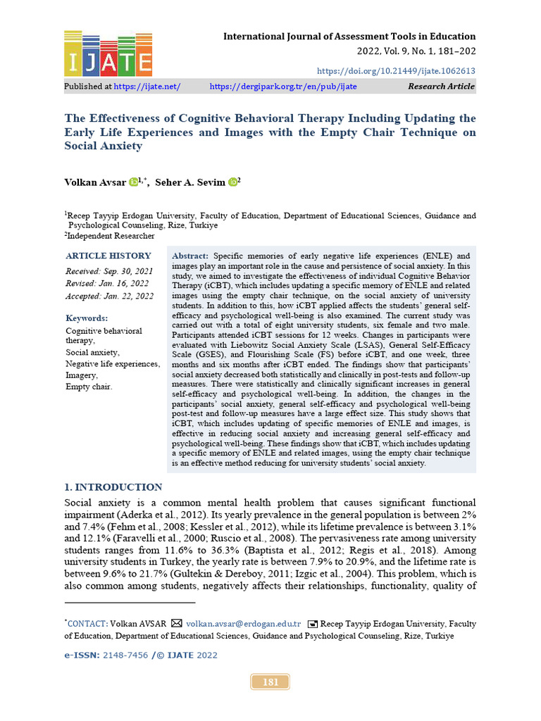 Accepted: Jan. 22, 2022 images using the empty chair technique, on the social anxiety of university
