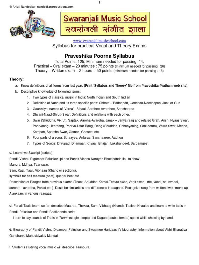 1. Candidates are expected to know how to sing Raagas from previous exams.