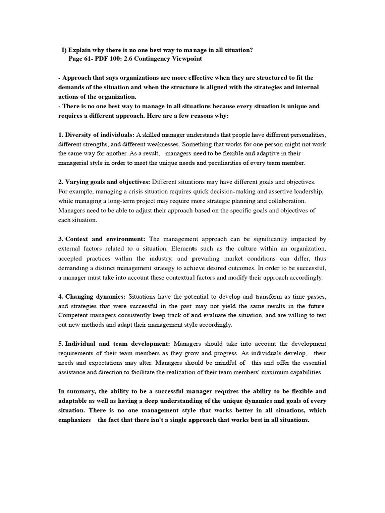 the same way for another. As a result, managers need to be flexible and adaptive in their