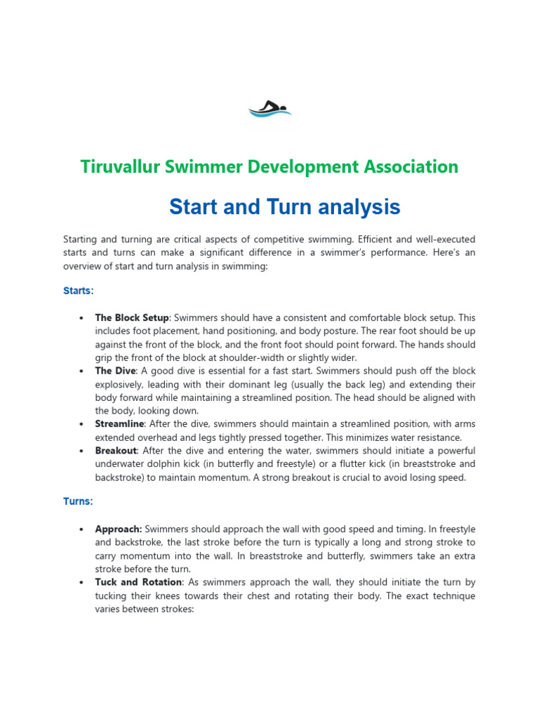 Starting and turning are critical aspects of competitive swimming. Efficient and well-executed