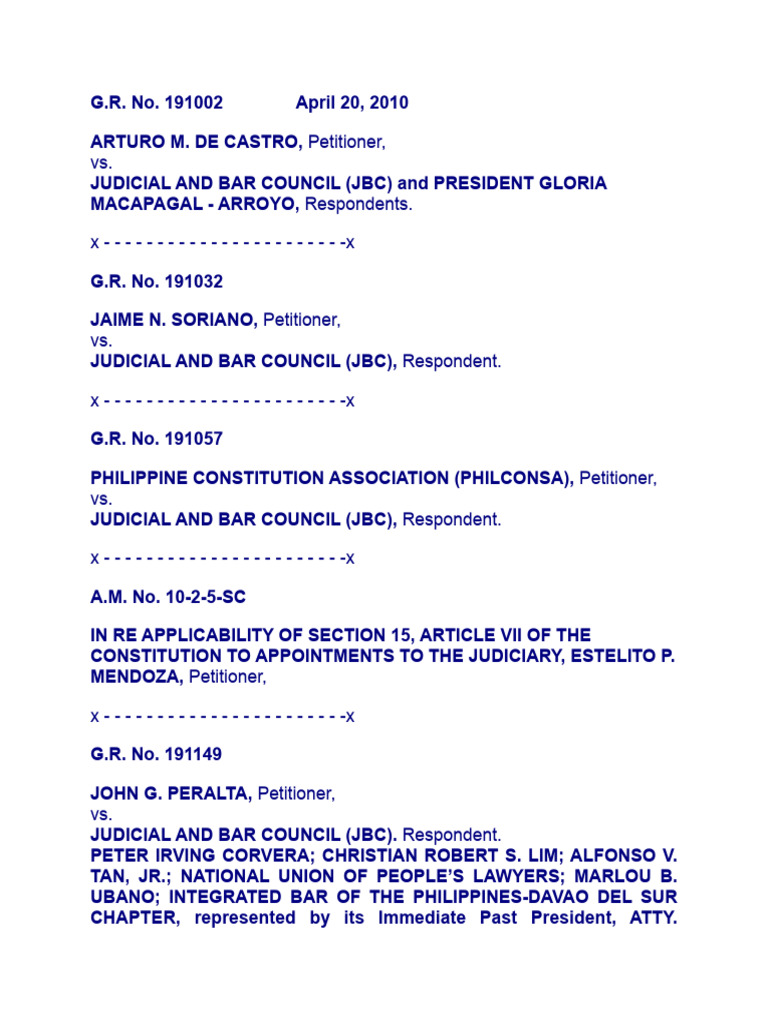 JUDICIAL AND BAR COUNCIL (JBC). Respondent.