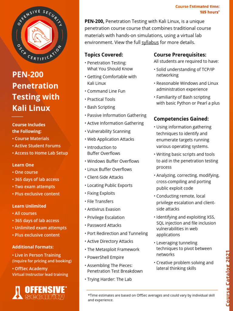 *Time estimates are based on OffSec averages and could vary by individual skill