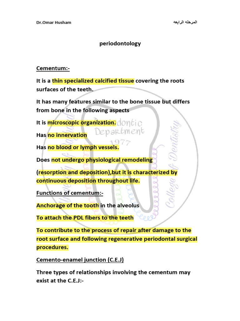 contains cells (cementocytes), but sharpey's fibers occupy a