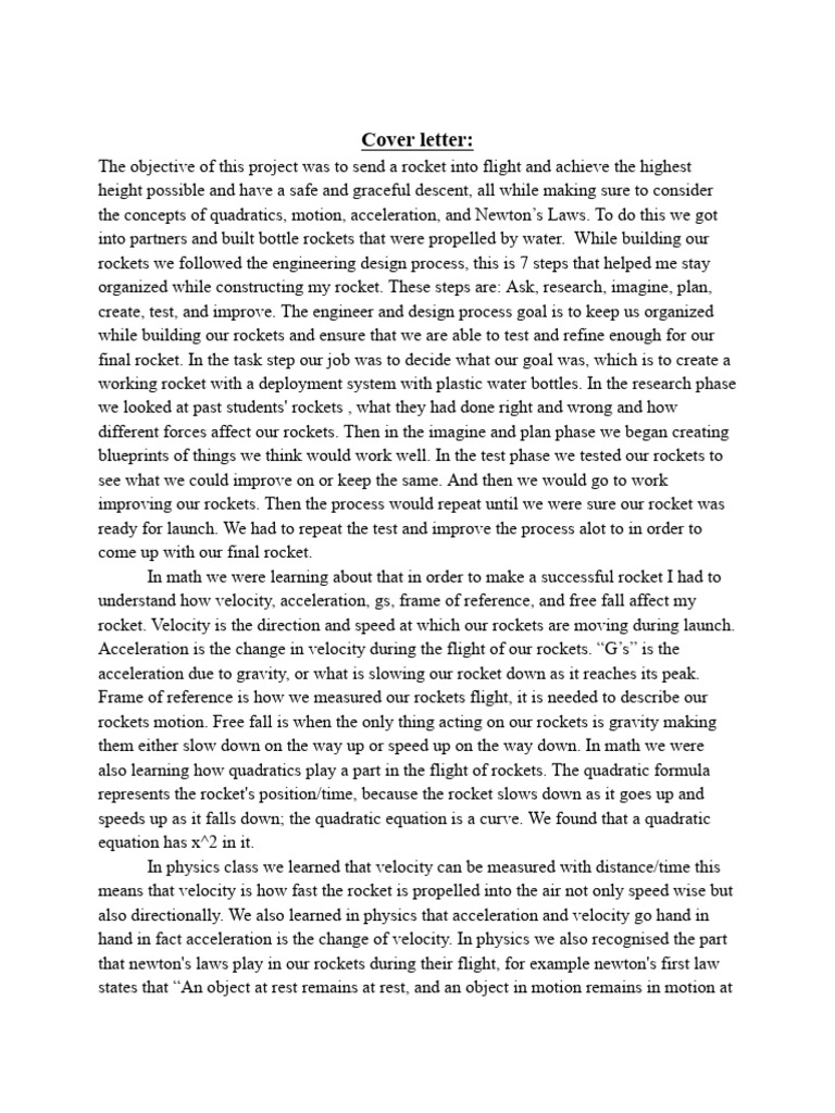 different forces affect our rockets. Then in the imagine and plan phase we began creating