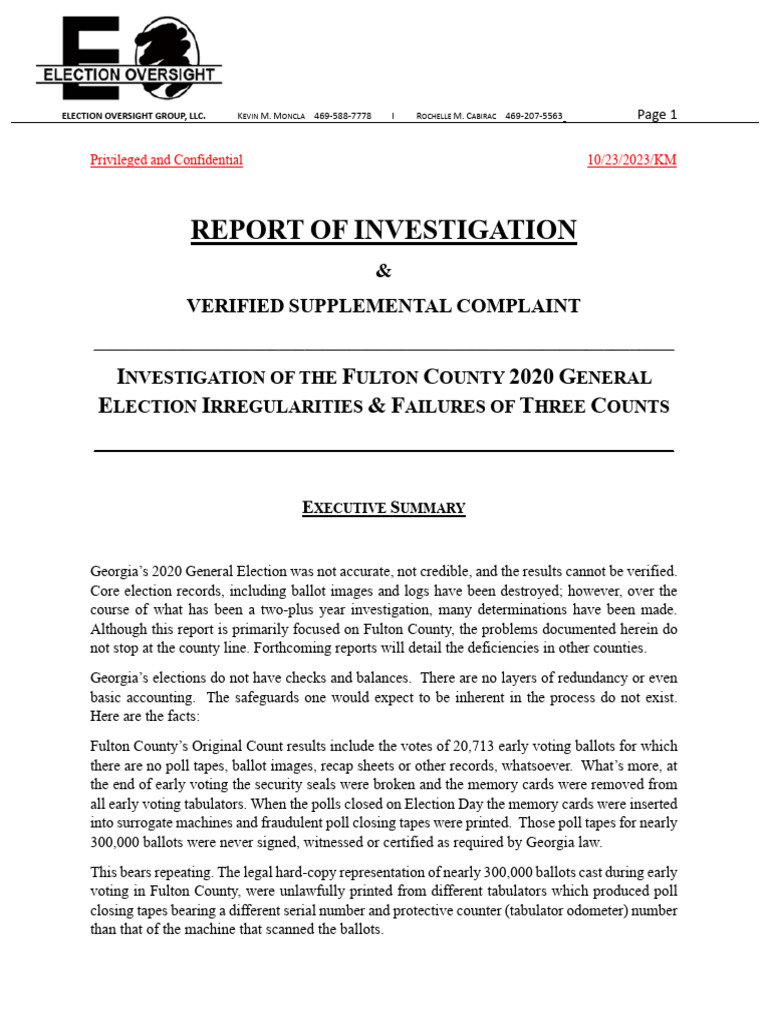 ELECTION OVERSIGHT GROUP, LLC. KEVIN M. MONCLA 469-588-7778 I ROCHELLE M. CABIRAC 469-207-5563 Page 2