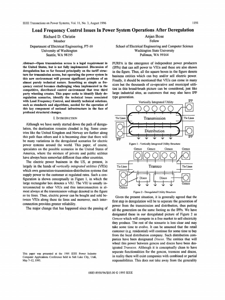 Richard D. Christie (University of Washington) and An- could have an explicit contract for energy purchase to cover
