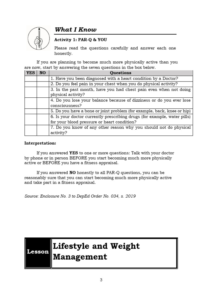 After accomplishing the Physical Activity Readiness Questionnaire (PAR-Q) it