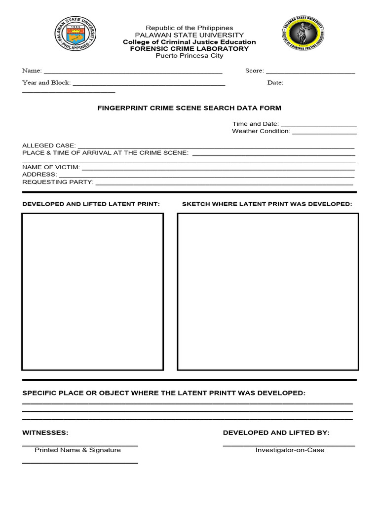 FINGERPRINT CRIME SCENE SEARCH DATA FORM