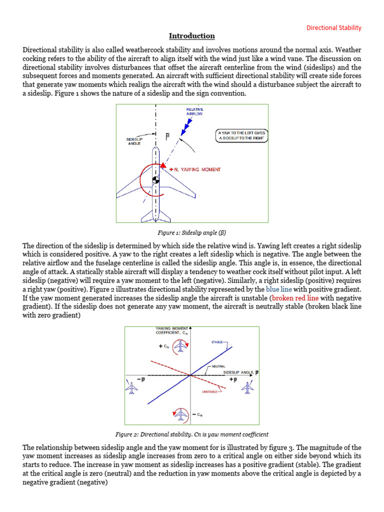 a right yaw (positive). Figure 2 illustrates directional stability represented by the blue line with positive gradient.