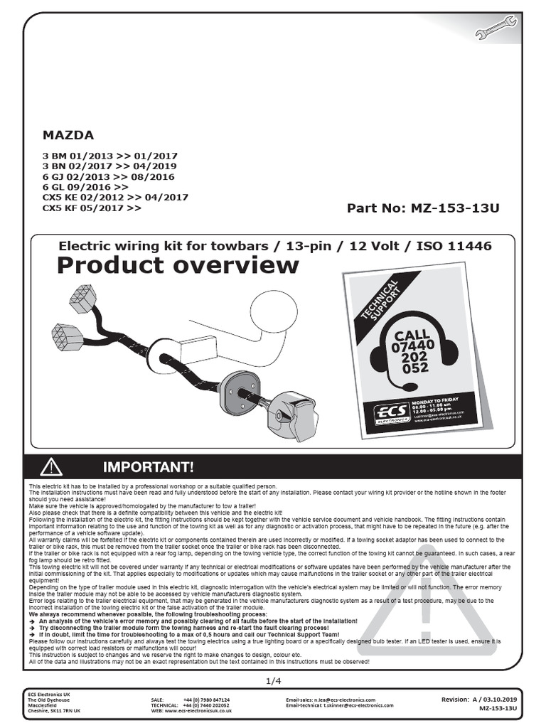 The installation instructions must have been read and fully understood before the start of any installation. Please contact your wiring kit provider or the hotline shown in the footer