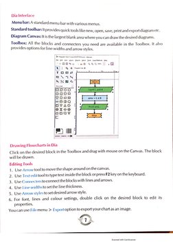 - Creating Flowcharts with Dia: Details the process of creating flowcharts using the Dia software, including interface and tools.