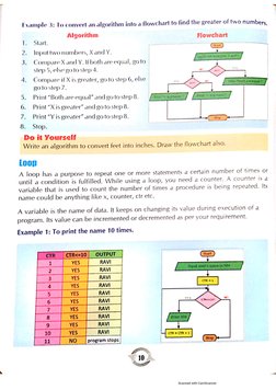 ‘Scanned with CemScannerExample 3: To convert an algorithm into a flowchart to find the greater of two numbers,