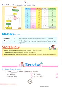 - Exercises and Glossary: Includes exercises to practice algorithm and flowchart creation, accompanied by a glossary of terms.